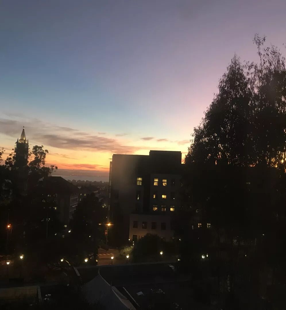 从Foothill宿舍可以看到教学楼和Sather Tower